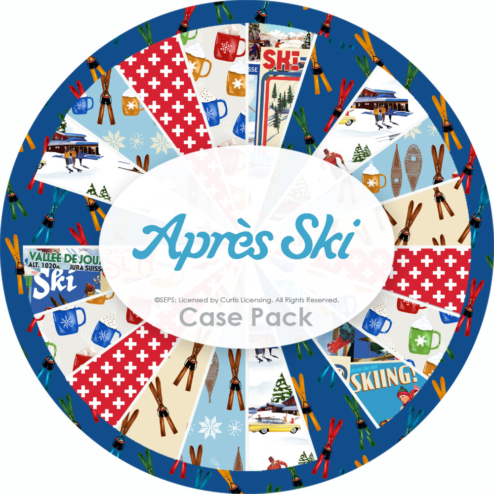 Hit the slopes in style with Après Ski, an officially licensed quilting cotton fabric collection from The Saturday Evening Post, inspired by the vintage ski posters and snowy alpine resort prints showcased in the line. Featuring retro skis, cozy hot beverages and classic Swiss Cross motifs in bright-but-subdued vintage hues, this collection brings the charm and warmth of winter fun to every quilt and project. Play up on the theme with throw pillows shaped like mountains and quilts with winter elements. Pair with comfy fabrics like fleece for even more comfort.