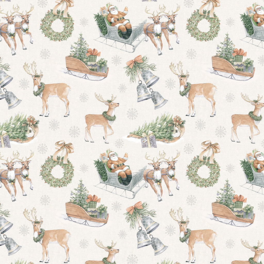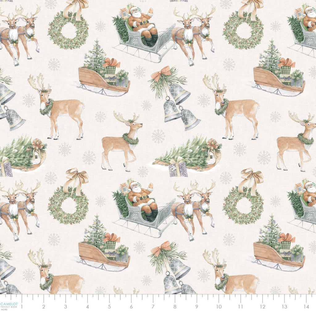 Inspired by homestead farm holiday décor, Laura Marshall's Home for the Holidays quilting cotton fabric collection brings a fresh, contemporary twist to classic holiday style. With soft neutrals, sage greens, cozy plaids and timeless motifs like snowflakes, wreaths, silver bells and reindeer, this collection is perfect for creating festive projects that feel right at home.