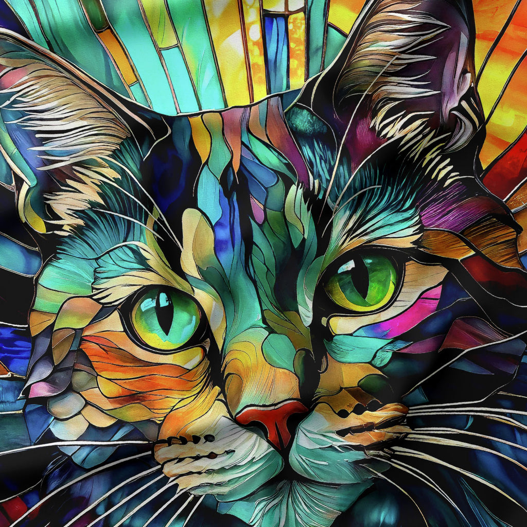Step into a world of colour with Kaleidoscope, a quilting cotton fabric collection, where jewel-toned raindrops and swirling medallion-like umbrellas are depicted in artist Peggy Collins' iconic stained glass art style. Paired with the dazzling Kaleidoscope stained glass cat panel, this vibrant collection turns every quilt into a beautiful story of light, radiance and prismatic brilliance.