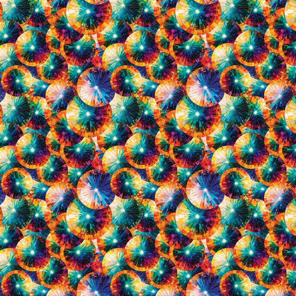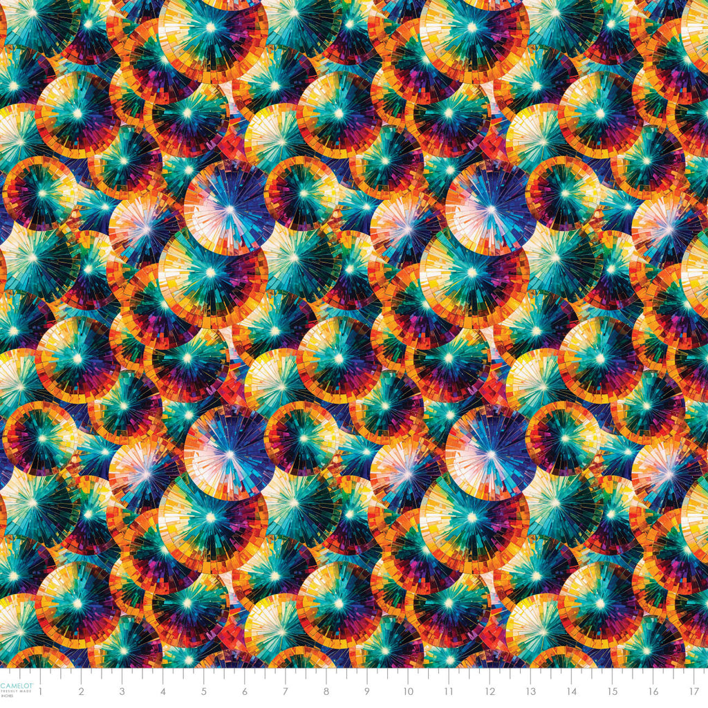 Step into a world of colour with Kaleidoscope, a quilting cotton fabric collection, where jewel-toned raindrops and swirling medallion-like umbrellas are depicted in artist Peggy Collins' iconic stained glass art style. Paired with the dazzling Kaleidoscope stained glass cat panel, this vibrant collection turns every quilt into a beautiful story of light, radiance and prismatic brilliance.