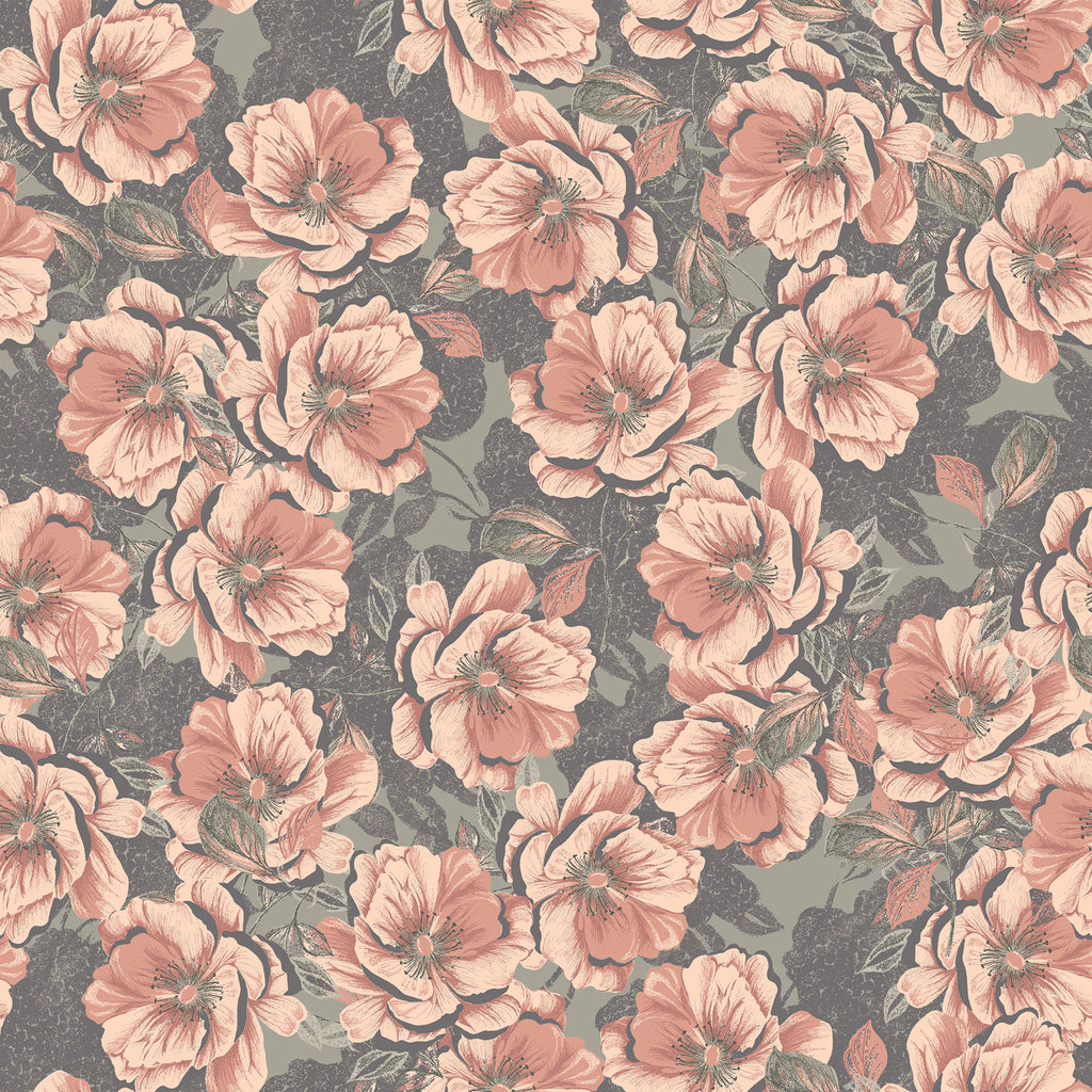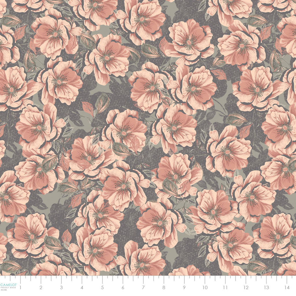 Rosalind Grey by artist Andrea Jasid Grassi is a dreamy, romantic quilting cotton fabric collection blooming with delicate camellias, soft florals, and timeless feminine charm. In soft shades of cream, grey, blush and dusty coral, each print evokes classic elegance, perfect for bridal accents, wedding decor, heirloom quilts and projects needing elevated, sophisticated designs.