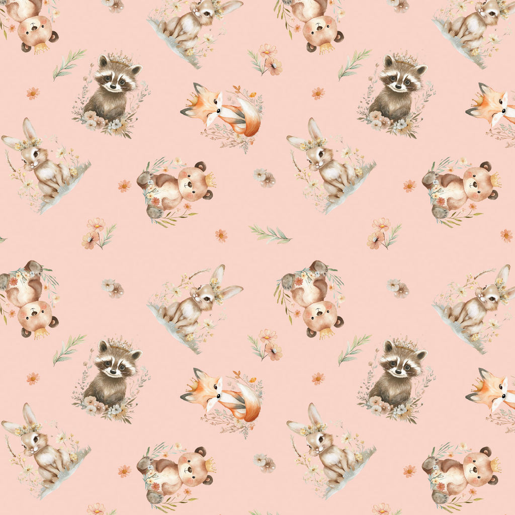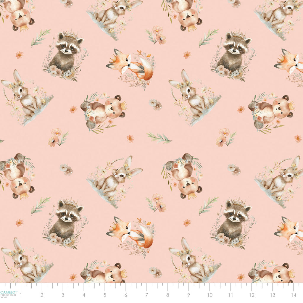 Sagebrush Babies is a sweet, soft quilting cotton fabric collection by artist Ramona Murdock where bear cubs, bunnies, fox kits and racoon kits play among meadows, florals and gentle ginghams. In soothing shades of white, taupe, blush, sage, light coral, and rust, with tiny dots, animal blocks, pretty florals and rounding out the assortment with a narrow panel of adorable animal babies, this collection is perfect for nursery quilts and decor, clothing for babies and toddlers and charming baby shower items.